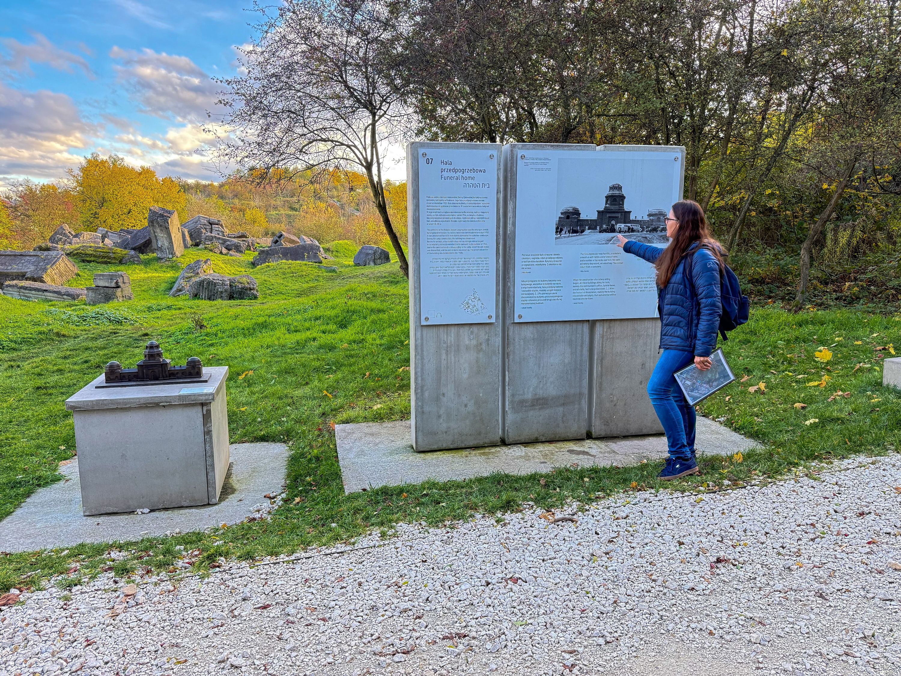 On this guided walk your expert guide pieces the camp together from what survives: the Grey House, the ruins of the pre-burial hall, traces of the Jewish cemeteries, the roll-call square, and paths where fragments of gravestones were once used to pave roads. You will reflect at major memorials, including the Monument of Torn-Out Hearts, and learn how the camp was organized into living, hospital, administrative, and industrial sections.