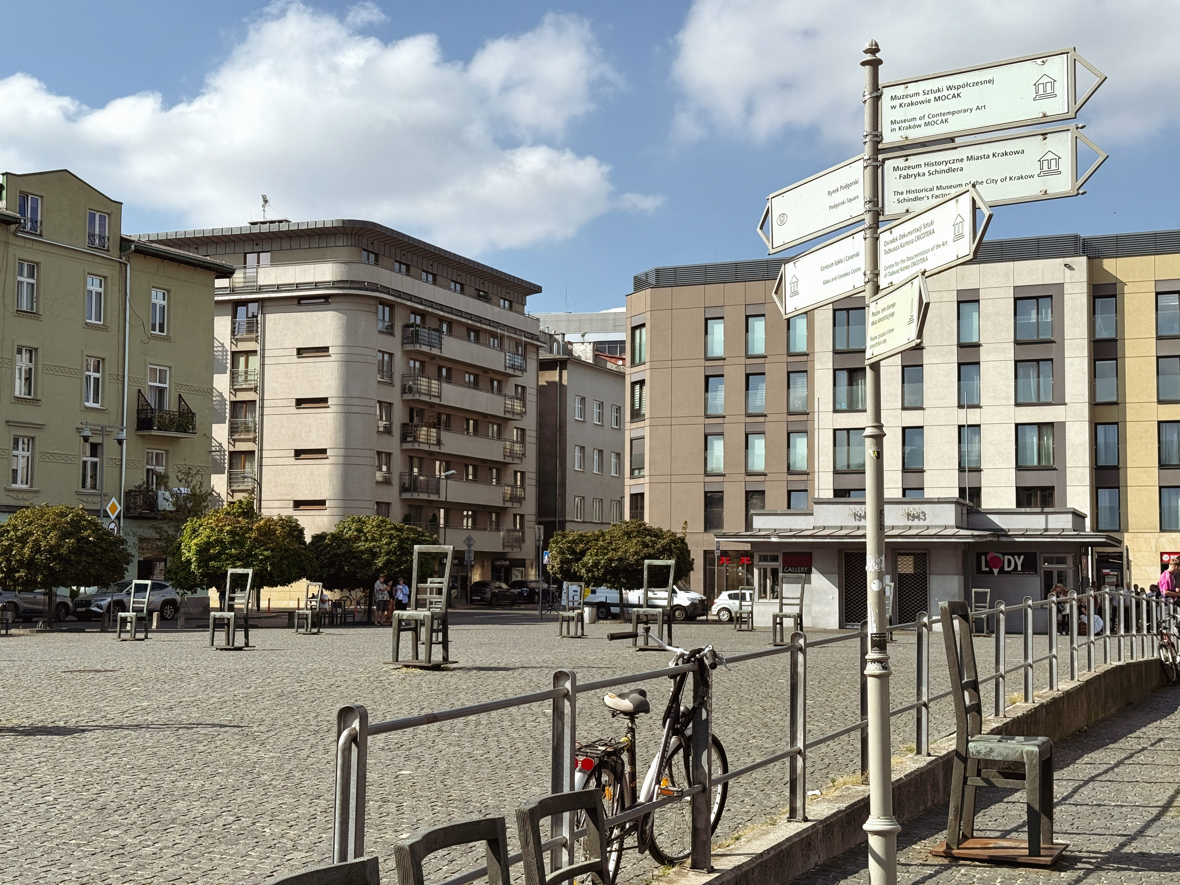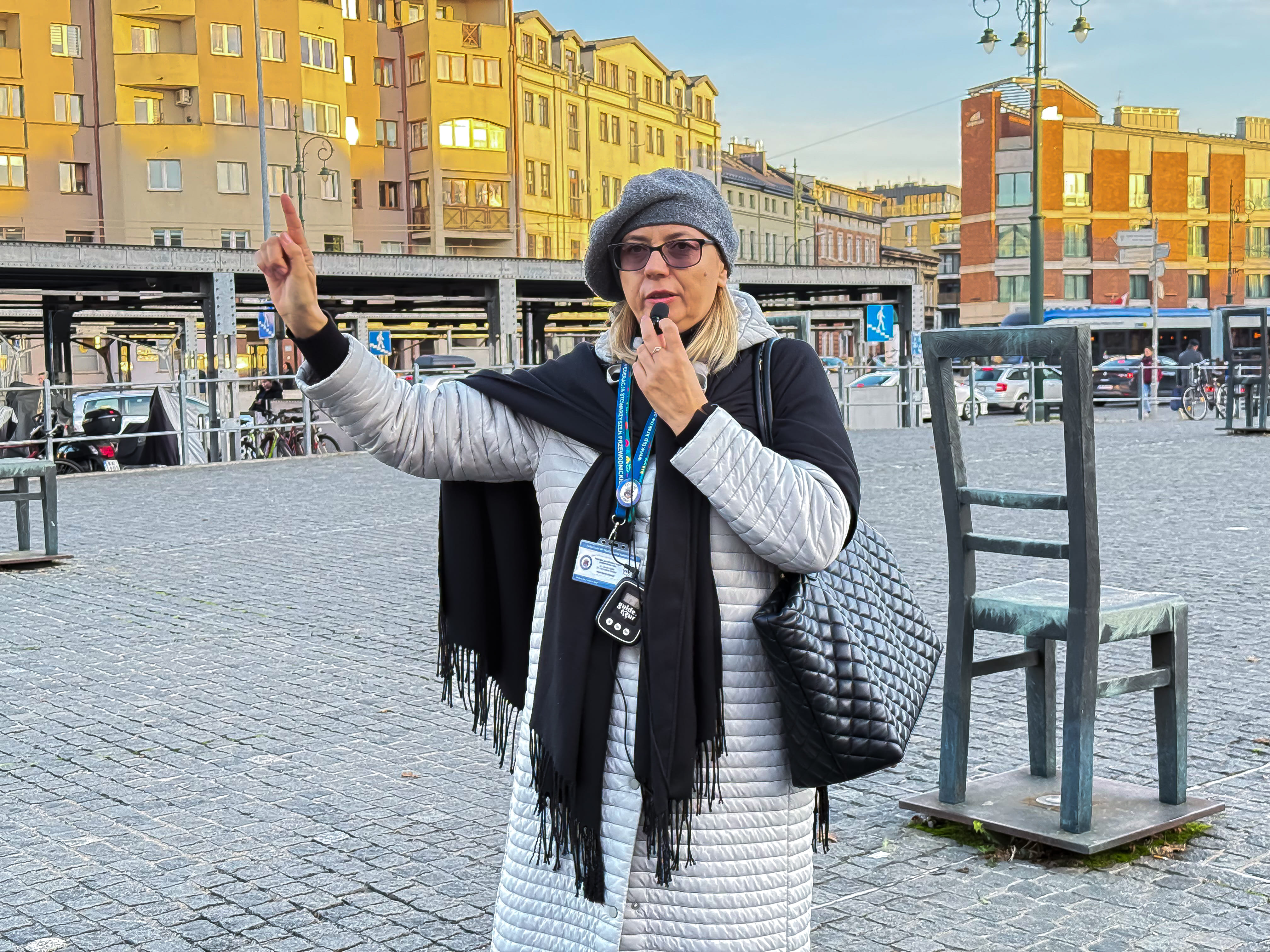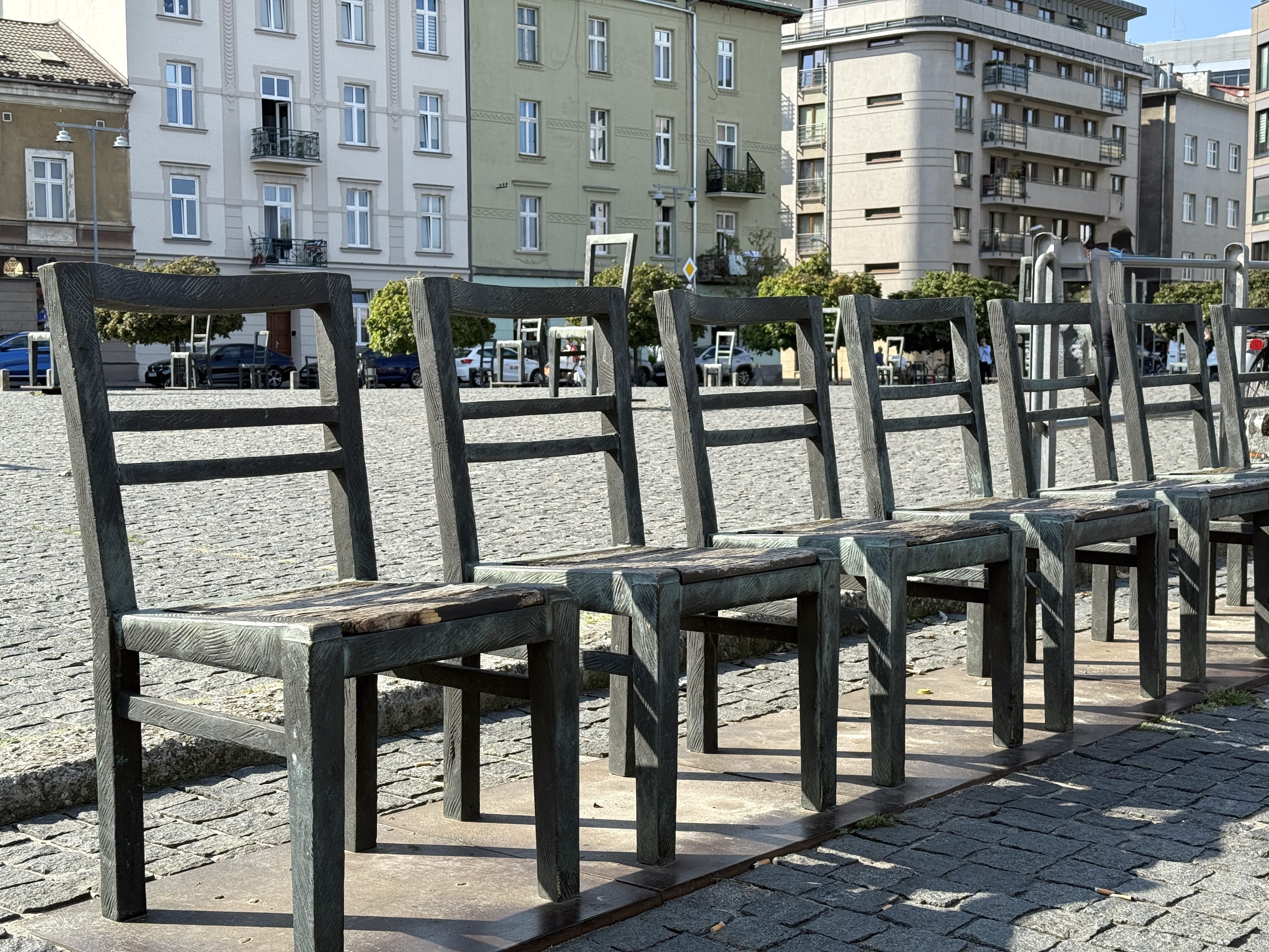 Continue to Ghetto Heroes Square, formerly known as Plac Zgody, the place where deportations were organized. Today, the square is marked by the powerful Chair Memorial, representing the belongings left behind by families who were taken away.