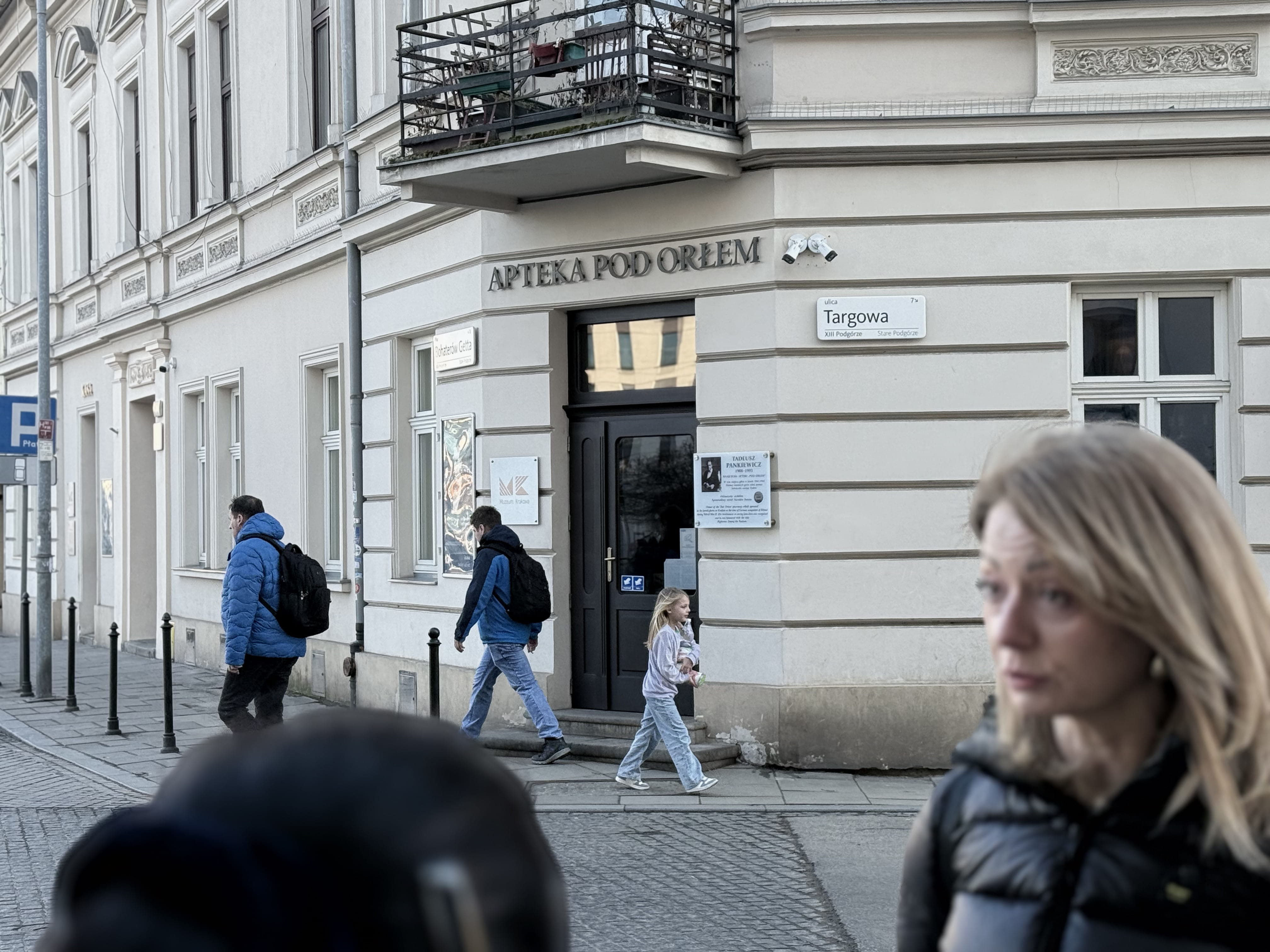 The tour concludes at the Under the Eagle Pharmacy. During the war, pharmacist Tadeusz Pankiewicz and his staff secretly helped Jewish residents of the ghetto, providing medicine and support despite the risks.